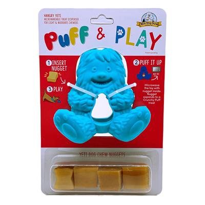 The Yeti Dog Chew Puff & Play Dog Chew Treat Dispenser combines treat time and playtime. This treat-dispensing toy is paw-fect for light and moderate chewers. Just insert a Yeti nugget (refills sold separately), place the toy and nugget in the microwave for one minute so the nugget puffs up, let it cool down and then let playtime commence. The nugget will puff up to twice its size and your furbaby can enjoy the crunchy treat. This long-lasting chew toy is even dishwasher safe for su-paw easy cleaning.