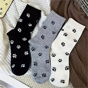 These PawPrint Ankle Socks are available in 3 colors: black, white or grey. 80% Polyester and 20% Elastane. Handwash for best results.